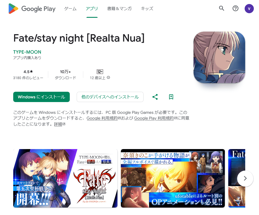 調査中に公式がスマートフォン向けにFateをリリースしているのを知った。