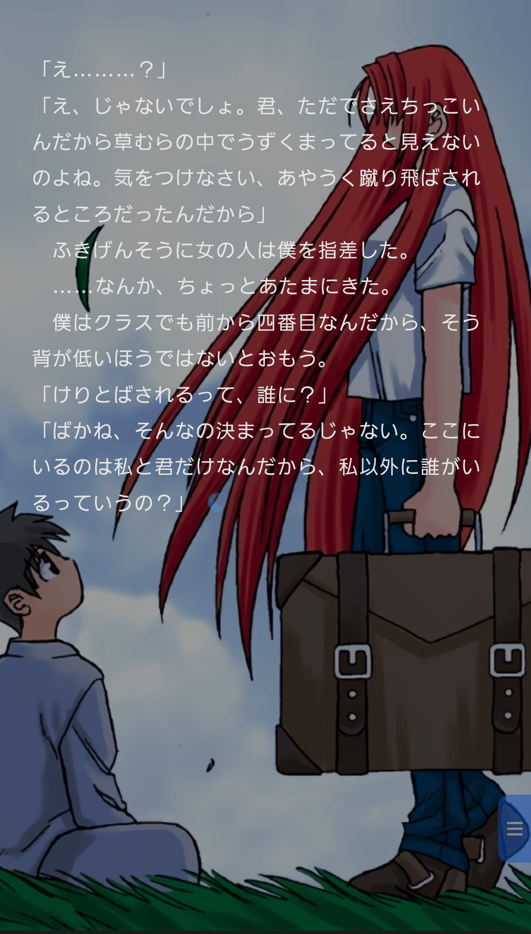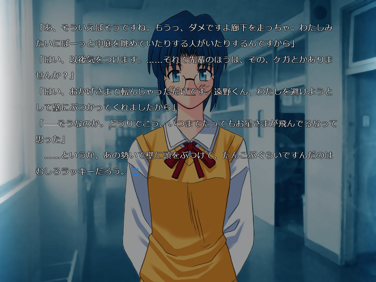 tsukiwebや既存のビジュアルノベルとは異なり、スクロールで文章を読み進めていく珍しい形式。スクロールで文字送りをすることができ、セリフにスクロールするとボイスが流れたり、エフェクトが表示される。個人的にはかなりやりづらい改変。