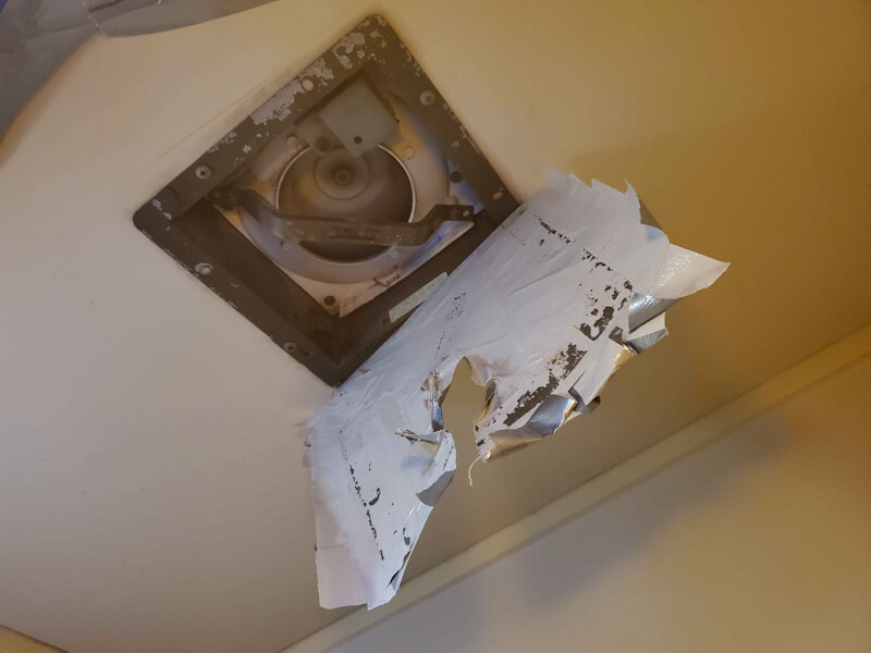 脱出後の後片付けのことを考えて換気扇をONにしておき、ダクトテープで塞いでおき、包丁で開放できるようにした。