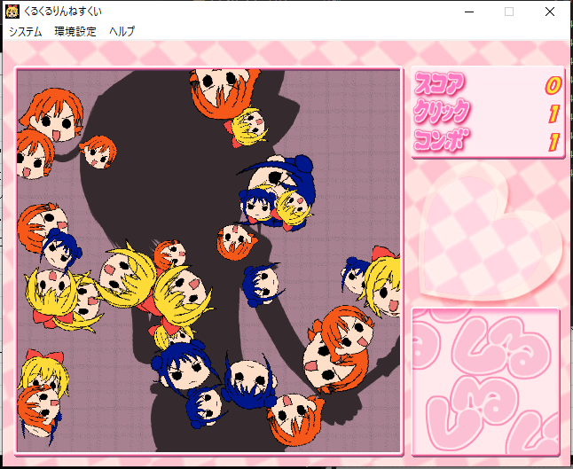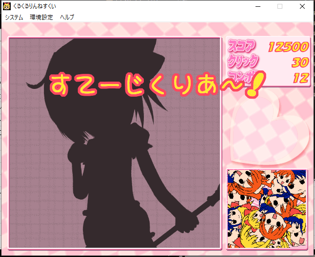 実態は金魚すくい。画面左側で暴れているキャラクターをクリックして右側に運んで捕まえていく。