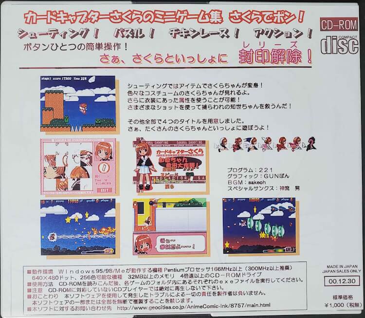 「カードキャプターさくらのミニゲーム集 さくらでポン!」です。ミニゲームは全部で4種類あり、なかには未完成のものも含まれていて面白い。