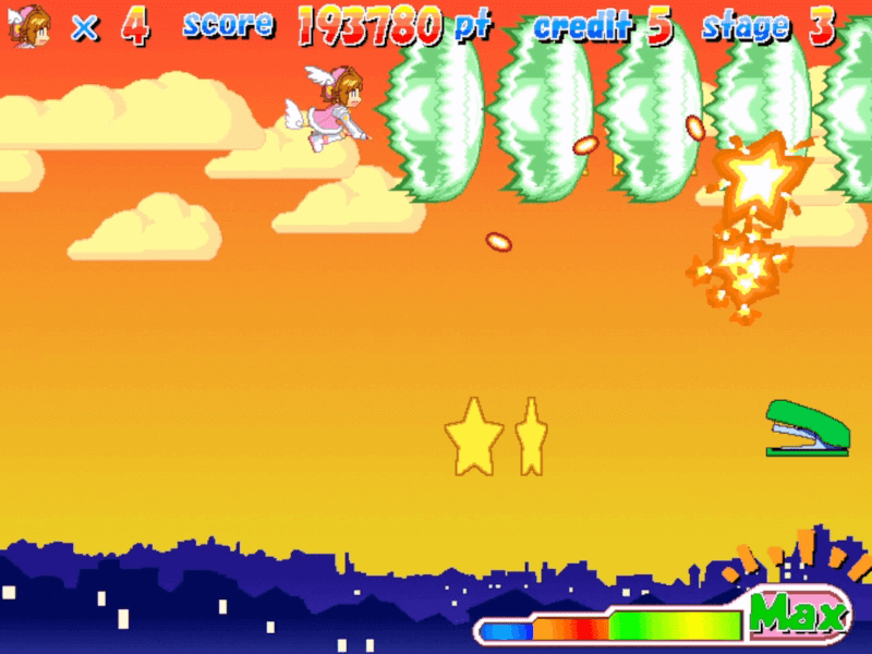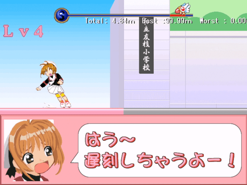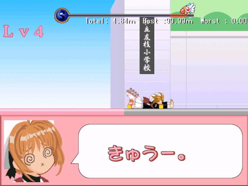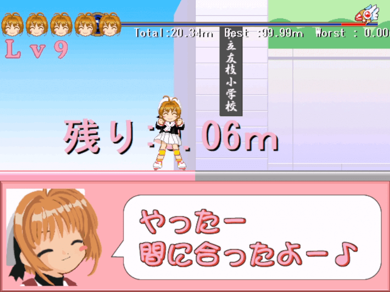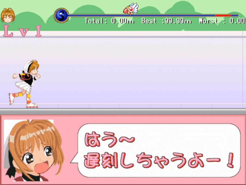 10回クリアでエンディング。回を増すごとにさくらのローラースケートの馬力が高まり停止にラグがかかるようになる。おそらく、アウトゾーンから一定の距離未満でクリアすると残基がひとつ増える仕様。シンプルながらなかなかおもしろい。