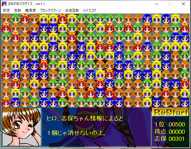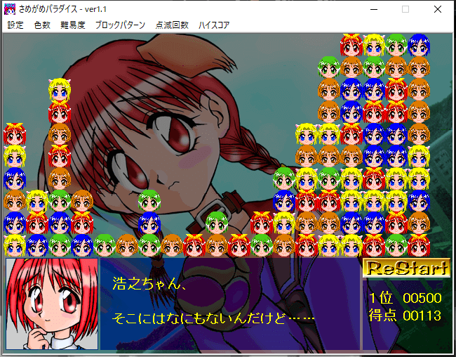 ToHeartキャラとさめがめが遊べるゲーム。Windows95用でフロッピーディスクの同人ゲームだが、Windows10でもなんの問題もなく動作した。強制フルスクリーンになることもないのでDirectXを使った98~XPあたりのゲームより正常に動作している。すごい。