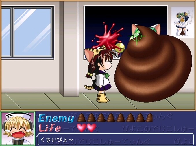 うんこを投げてくるでじこのドタマに鉛玉を撃ち放つという、歪んだ愛情表現のゲーム。