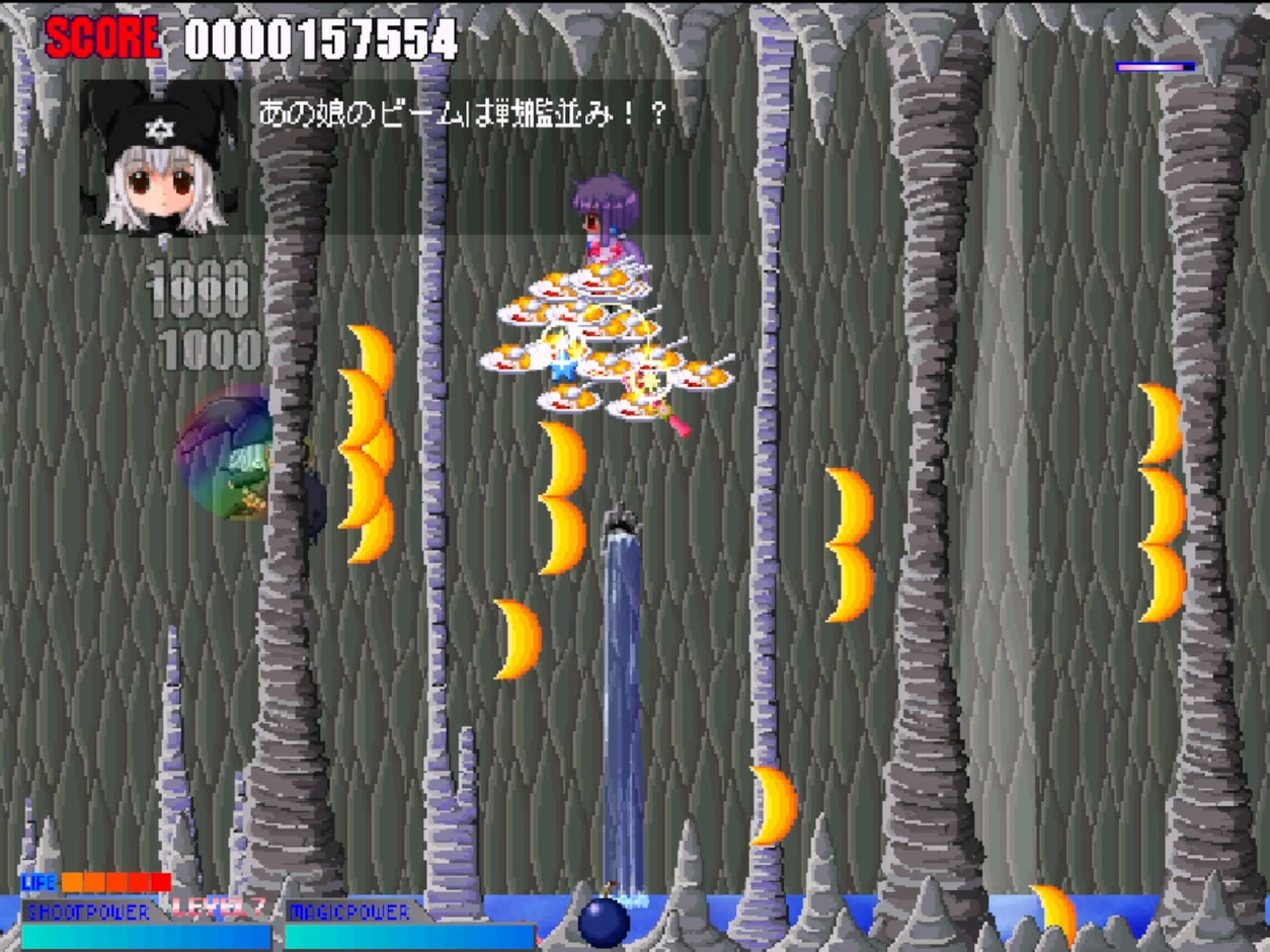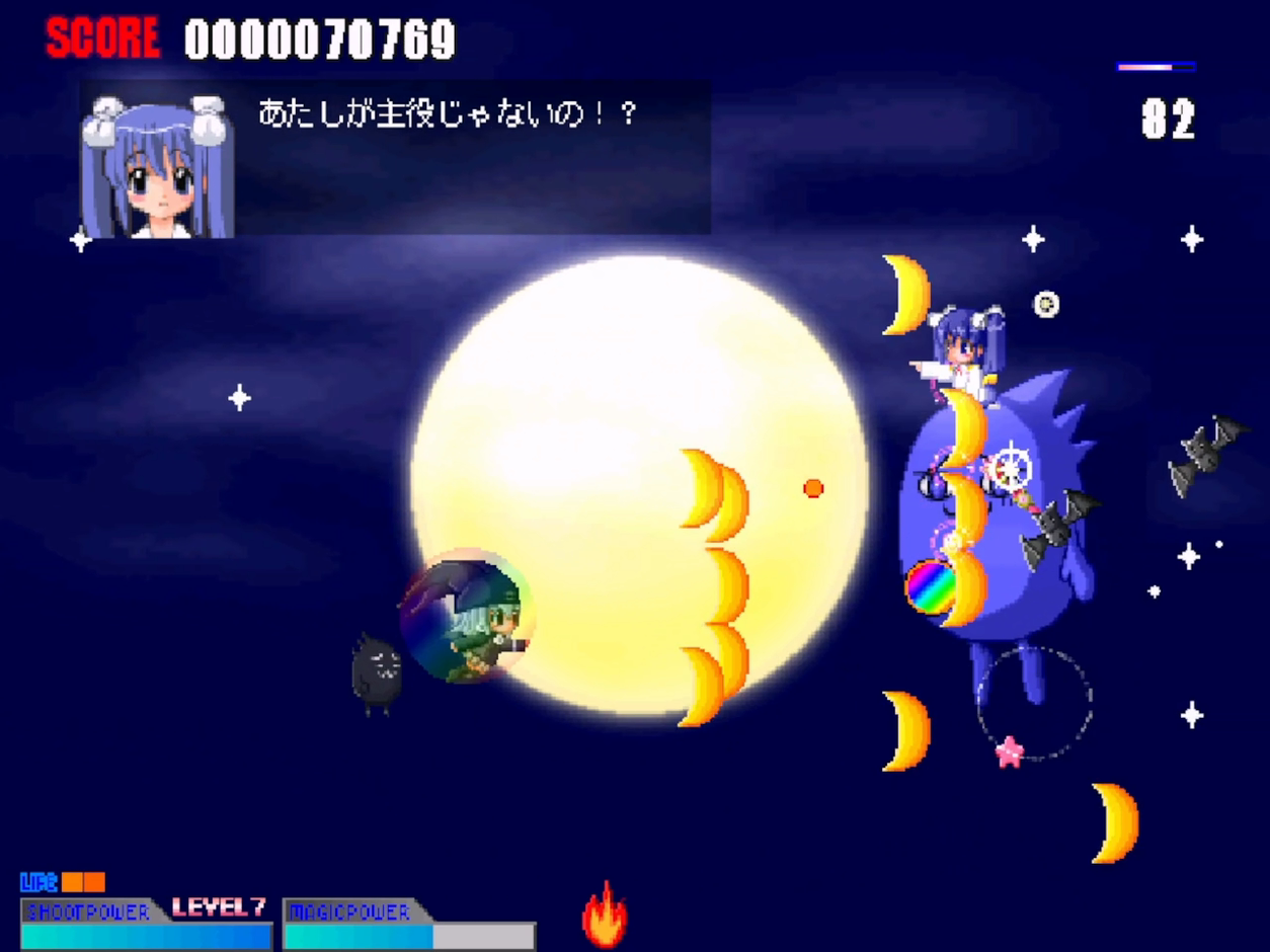 自機デカめで動きも早い。細かい敵弾に詰め寄られると不可避状態になることも多いが、ボムが強いのでだいたいどうにかなる。