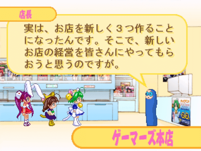 ゲームのストーリー。ゲーマーズが新しい3店舗にでじこ、ぷちこ、うさだラビアンローズが店長に就任。しかし、欲望尽きない彼女らはライバルの店を我が物にしようと占領を企てる。