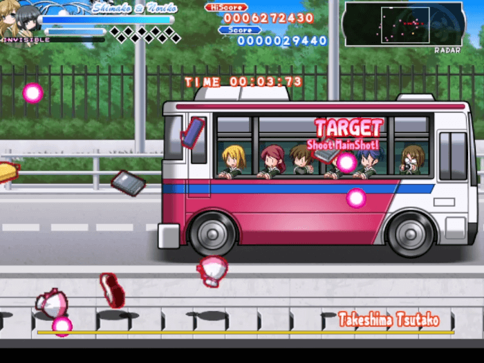 ▼中ボス 武島蔦子:バスの車内からモブに紛れてカメラで弾を撃つ