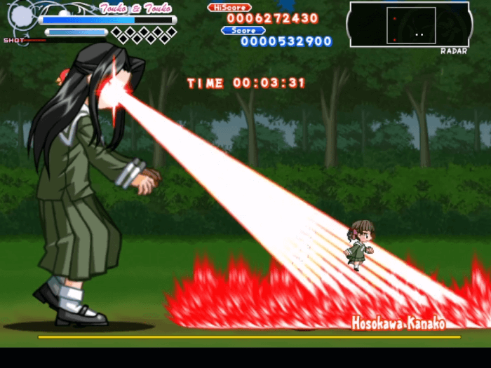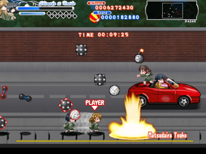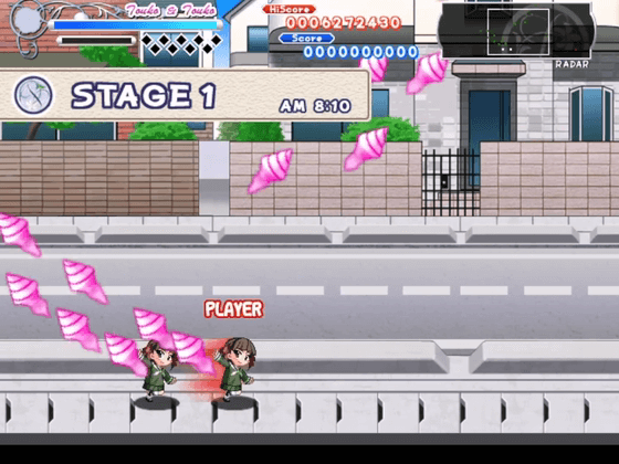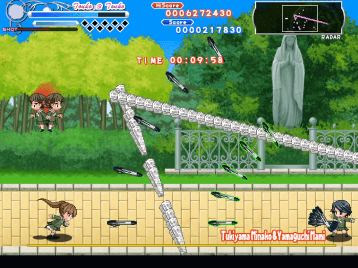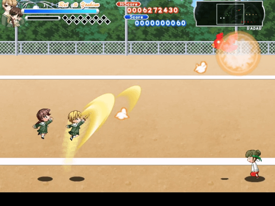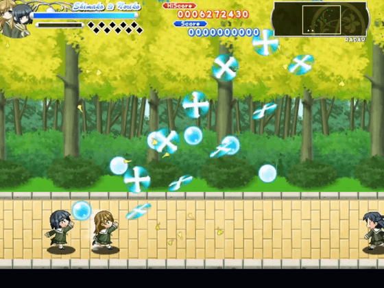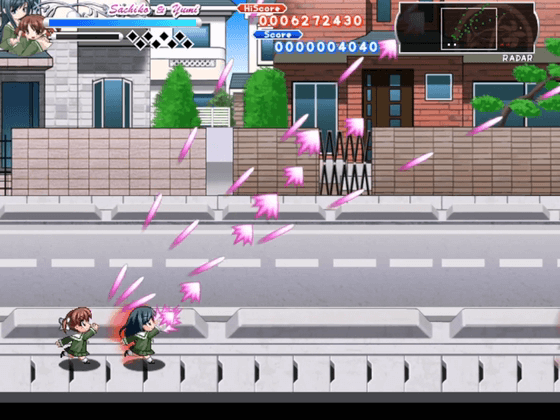 キャラクターは姉妹での選択となり、姉が操作キャラクター、妹が自動で追従するオプションとなる。当たり判定は姉のみで、攻撃は両者が行う。攻撃はキャラクターによって弾道や射程が大きく異なる。