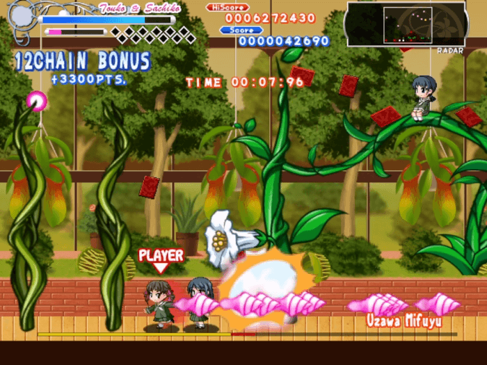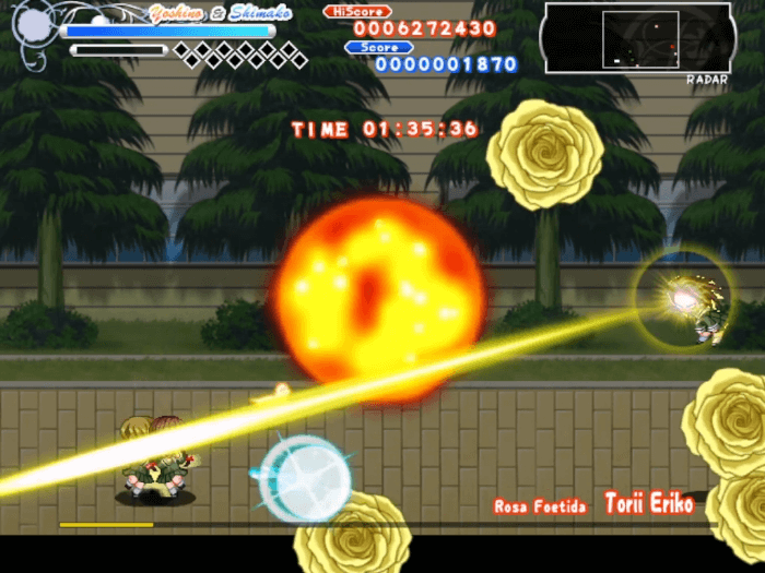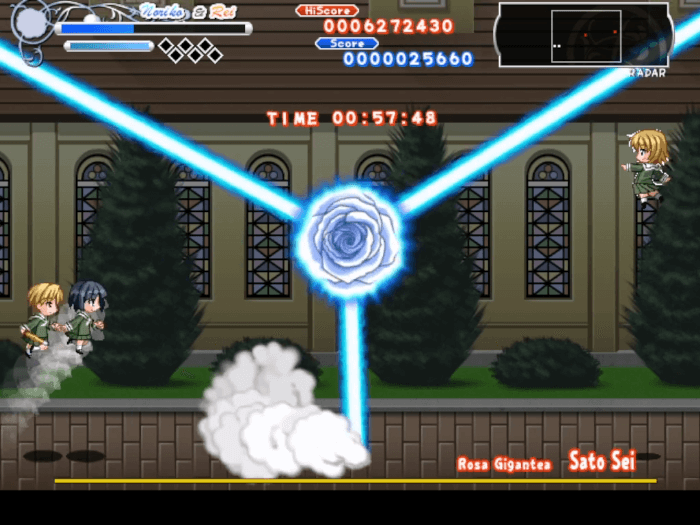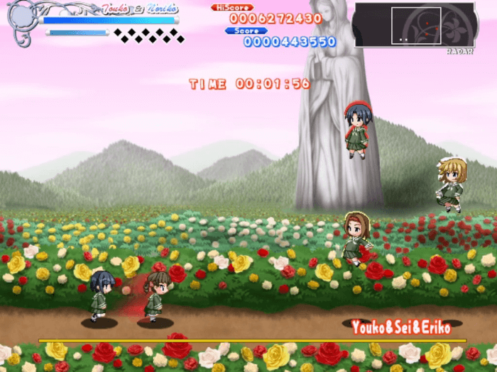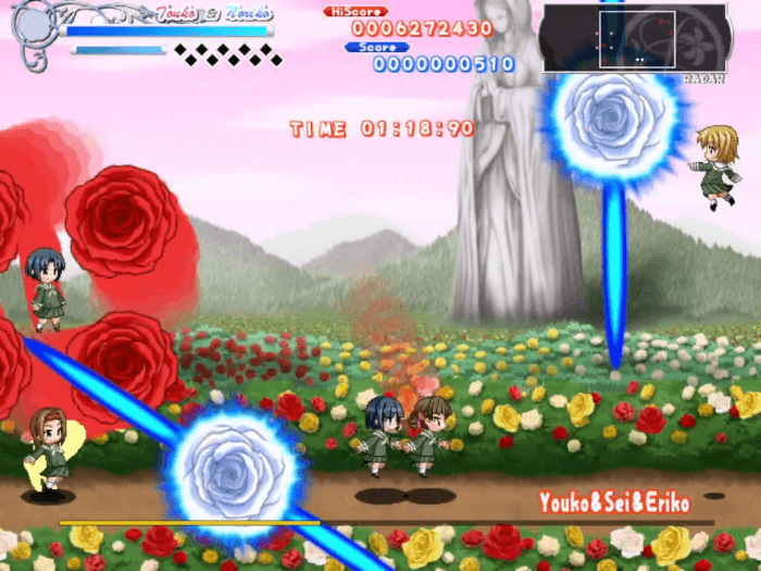 紅薔薇連弾を制作した同人ソフト系最大手サークルのマリみて同人ゲーム2作目。ジャンルは横スクロールアクションシューティング。滑らかなドット絵の祐巳たちが敵を蹴散らす爽快感あふれる弾幕アクションシューティング。