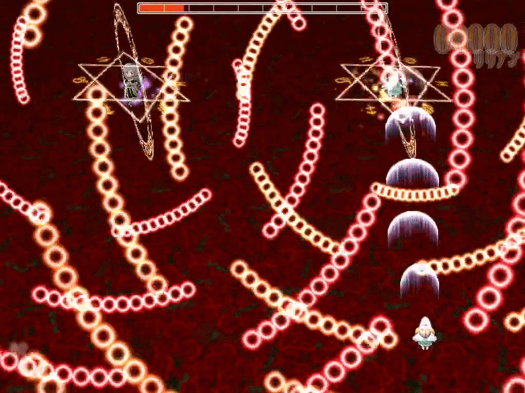 筆者は祥子の第8形態「紅の輪舞」が未クリアですが、手前の「弾幕姉妹」はぎりぎりクリアできました。コツとしては1、2段階目までは画面下よりも中央で避けた方が良いです。2段階目の一瞬の隙間を縫わないといけない動作はもう慣れるしかない。3段階目は未だに安定してクリアできません。ライフを削りながらどうにかクリア…。