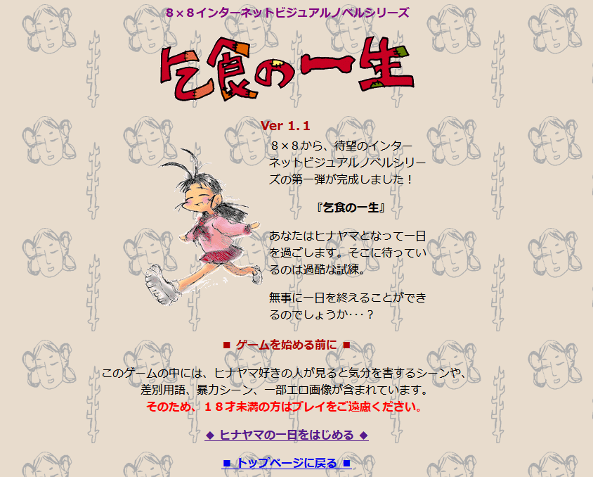 個人的に入手が絶対不可能だと思っていた「乞食の一生」がプレイできて嬉しい。