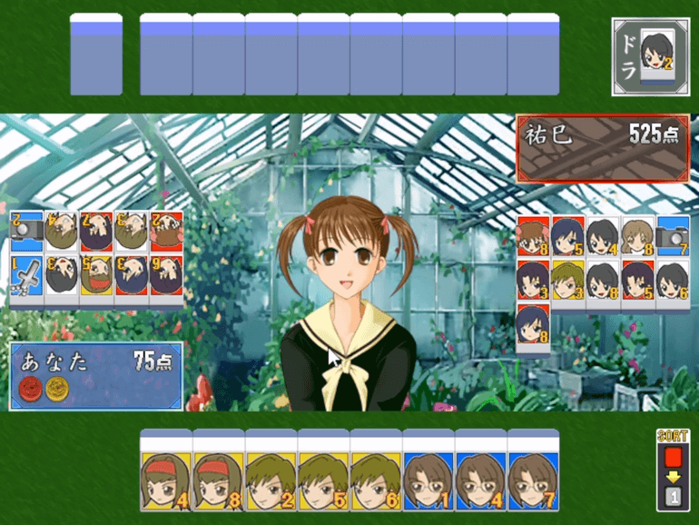 ゆみちゃんが出づらい、どうでもいい青い牌がやたら来る。後半の対戦は結構負ける。おすすめは3年薔薇を揃える役。