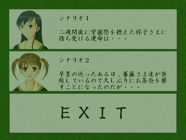 ノベル系のマリみてゲームの中では一番好きです。ストーリーは2種類あって、1個目は原作1巻を祥子視点で追うストーリー。2個目はオリジナル。