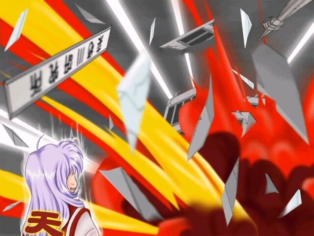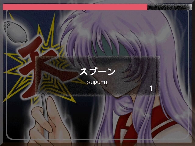 上・真ん中・下に芹香を移動させ、右からやってくるお題をタイプして倒す。ミスタイプや被弾で体力が減る。お題は英単語。お代をクリアするとボムが溜まり、スペースキーで発動。画面内の文字をすべて消すことができる。